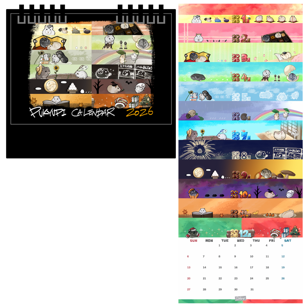 「ハムちゃんいっぱい!!選べるシール5枚」が全種類+4種でセットになった「ハムちゃん山盛り!!31種のハムスターシールセット」と、四季折々のハムちゃんが元気で楽しい「実用ジャンハムカレンダー2026(おまけつき)」がセットになって再登場!!